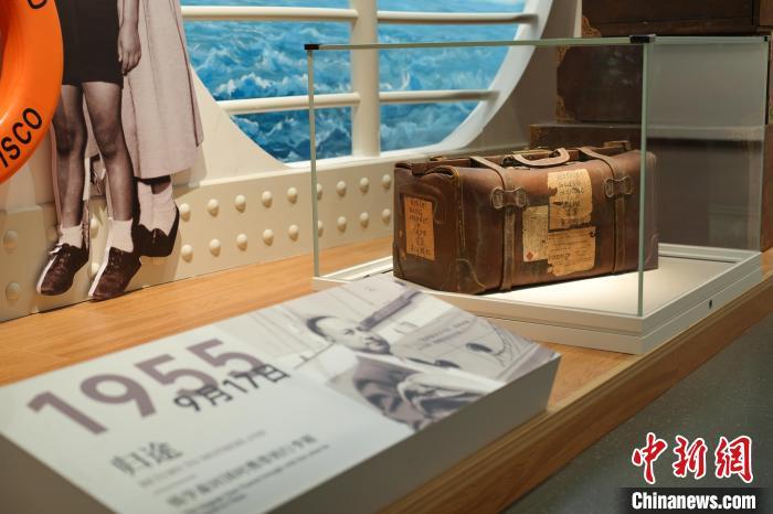图为展出的1955年钱学森携带回国的手提牛皮箱。 上海交通大学供图
