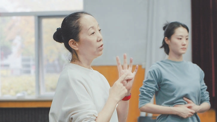 “男孩儿硬气一点,想想戏曲演员的眼睛;女孩儿的眼神可以‘花痴’一点,柔美一点。”排练厅里,王玫正在为北京歌剧舞剧院的演员排练一段群舞,给饰演戏曲中“大靠”的男演员和饰演青衣的女演员说戏。这段群舞描绘的正是小说中恢复老戏的故事,传统戏曲再次演出,老戏中英武刚正的男性和小鸟依人的女性形象跃然舞台之上,极具传统风韵。