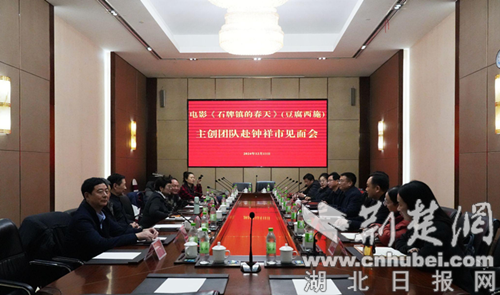 荆楚网(湖北日报网)讯(通讯员王琛 黎阳宏)12月11日,中国著名导演胡玫带领电影《石牌镇的春天》主创团队来钟祥举行见面会。市委副书记、代市长李鹏,副市长门克巴依参加活动。