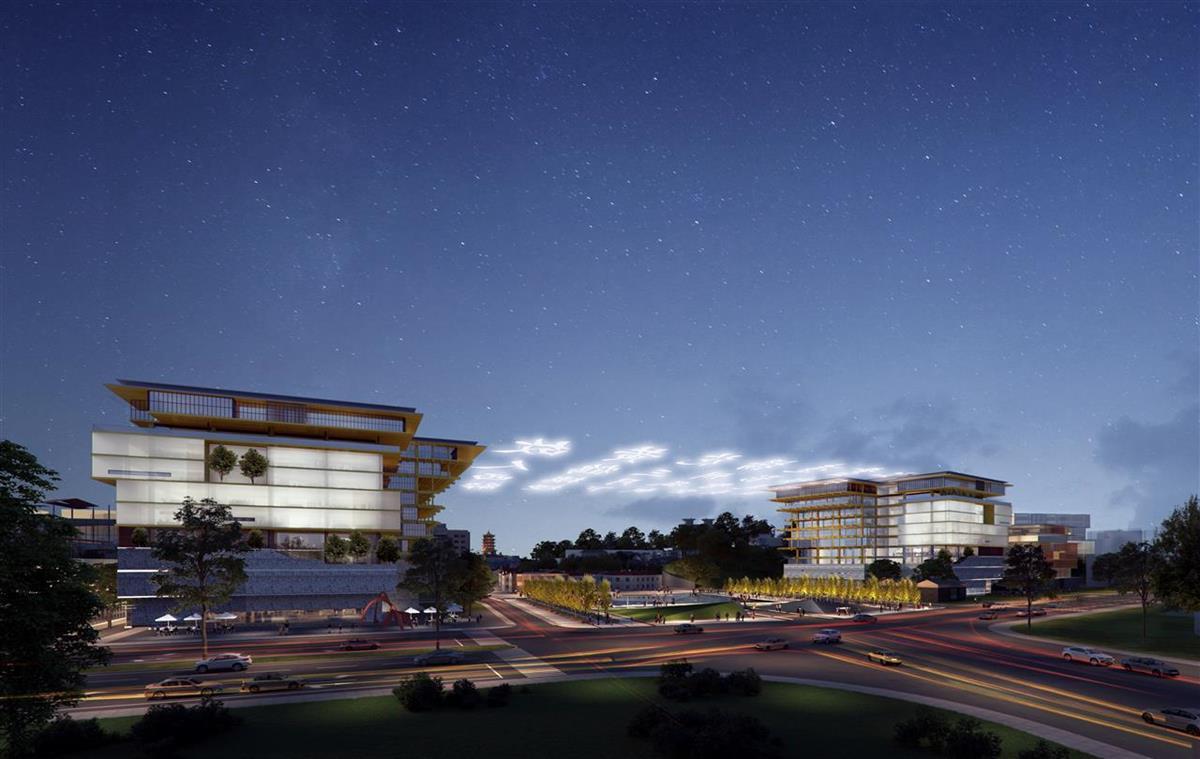 值得一提的是,遗址公园两侧拟规划对称式两座地标建筑,形似古代城门的“双阙”,夜间配合虚拟投影、增强现实AR等科技手段和艺术灯光,在遗址公园上方勾勒出武胜门的形态,实现武胜门与黄鹤楼的时空对话。
