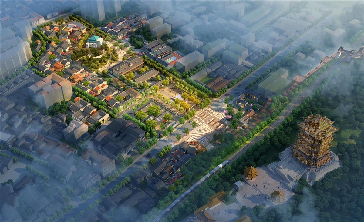 根据武昌古城得胜桥古轴片规划方案,得胜桥这片武昌城保留下来的为数不多的小肌理街区,北至武昌城唯一北门——武胜门,南抵城市文化地标——黄鹤楼,承担着古城格局风貌修复、历史遗产活化利用和人居环境品质改善等多重目标。本次方案旨在整体保护修复得胜桥老街,让这条承载着城市历史和人文记忆的老街化身为“一轴千年、昌盛市井”的古城历史风貌集中展示区。