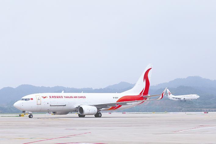 花湖国际机场连续4个月货运航班量超过3000架次,位居全国第三。 (湖北日报通讯员 王星予 摄)
