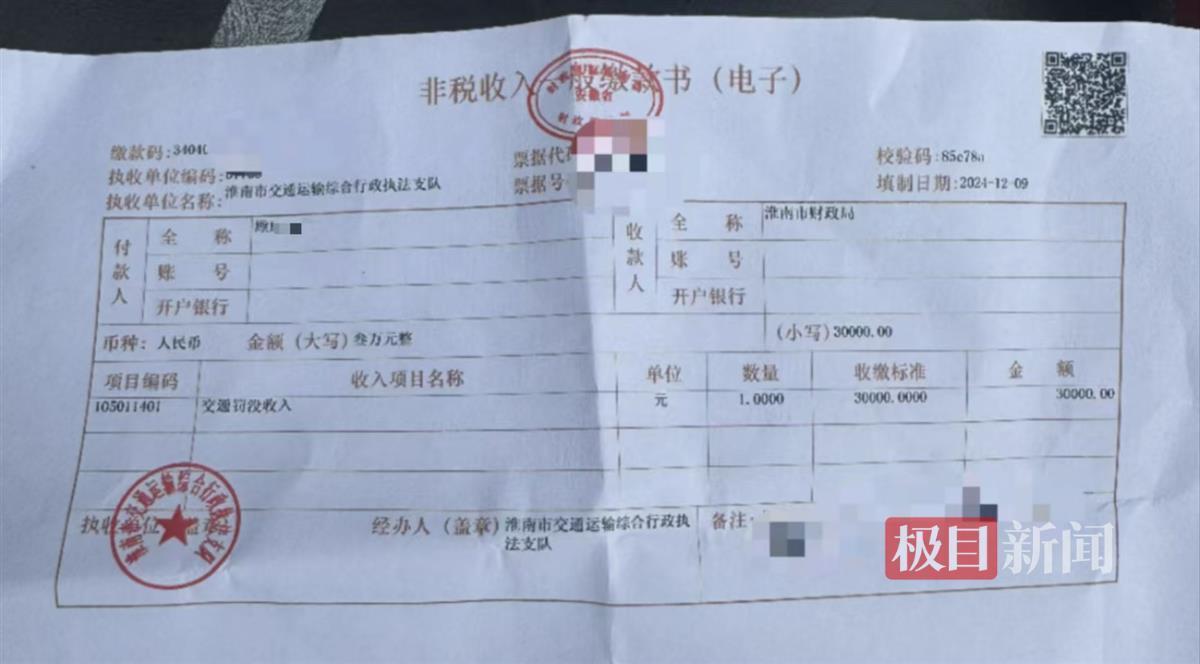 顾小虎称,他12月9日向淮南市交通运输综合行政执法支队交了3万元罚金,其中1.8万元是卖水稻的钱,另外1.2万元是向同村村民及村支书借的。这样,他才拿回被暂扣的车辆。