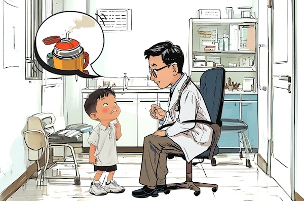 男孩明明(化名)今年7岁,上周六晚,他准备用吸管式保温杯喝水,一弹开杯盖,杯子里的热水瞬间喷出,明明当时完全没有任何防备,喷出的热水直接泼洒到他的面部和前胸,烫得他大声呼喊。明明妈妈听到后冲过来,立即带他去洗手间用冷水冲洗烫伤部位,冲洗了十多分钟后,见明明疼痛有所缓解,就在家继续观察,当晚没有去医院做进一步检查。