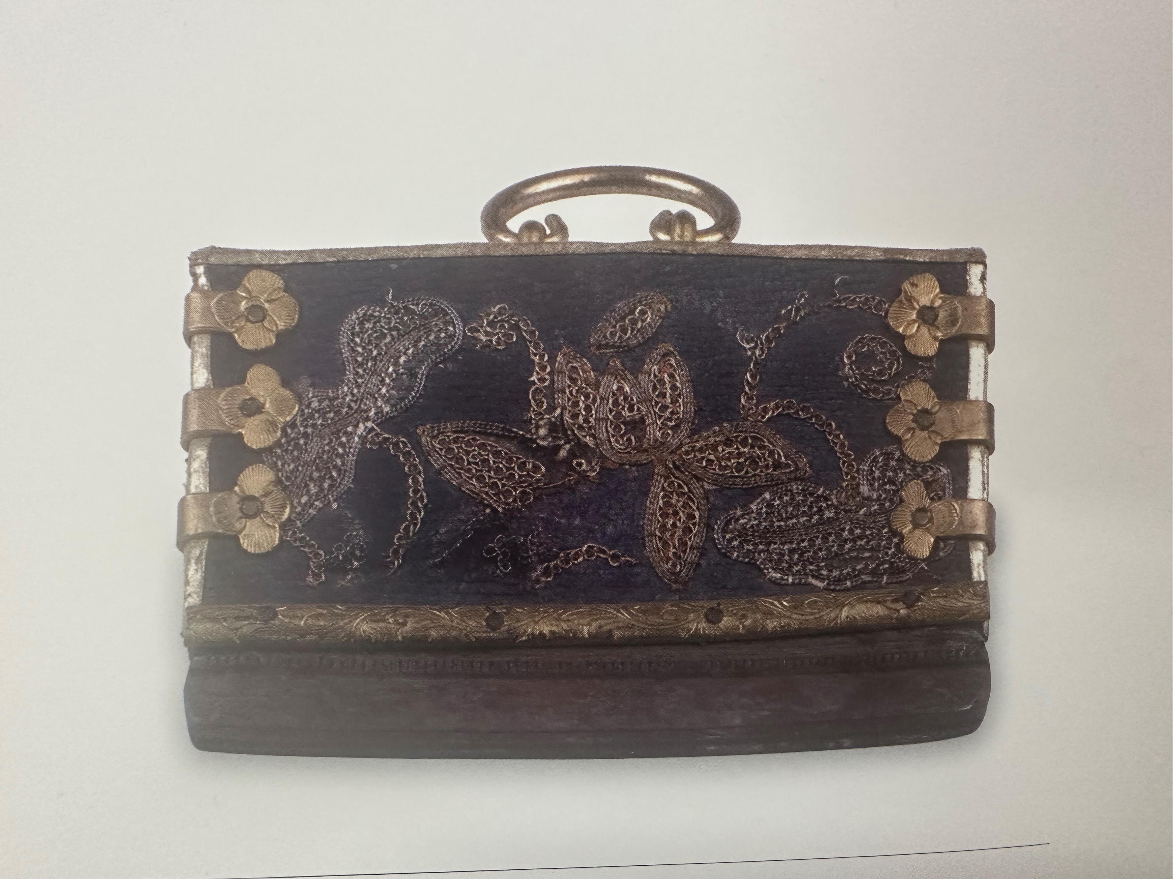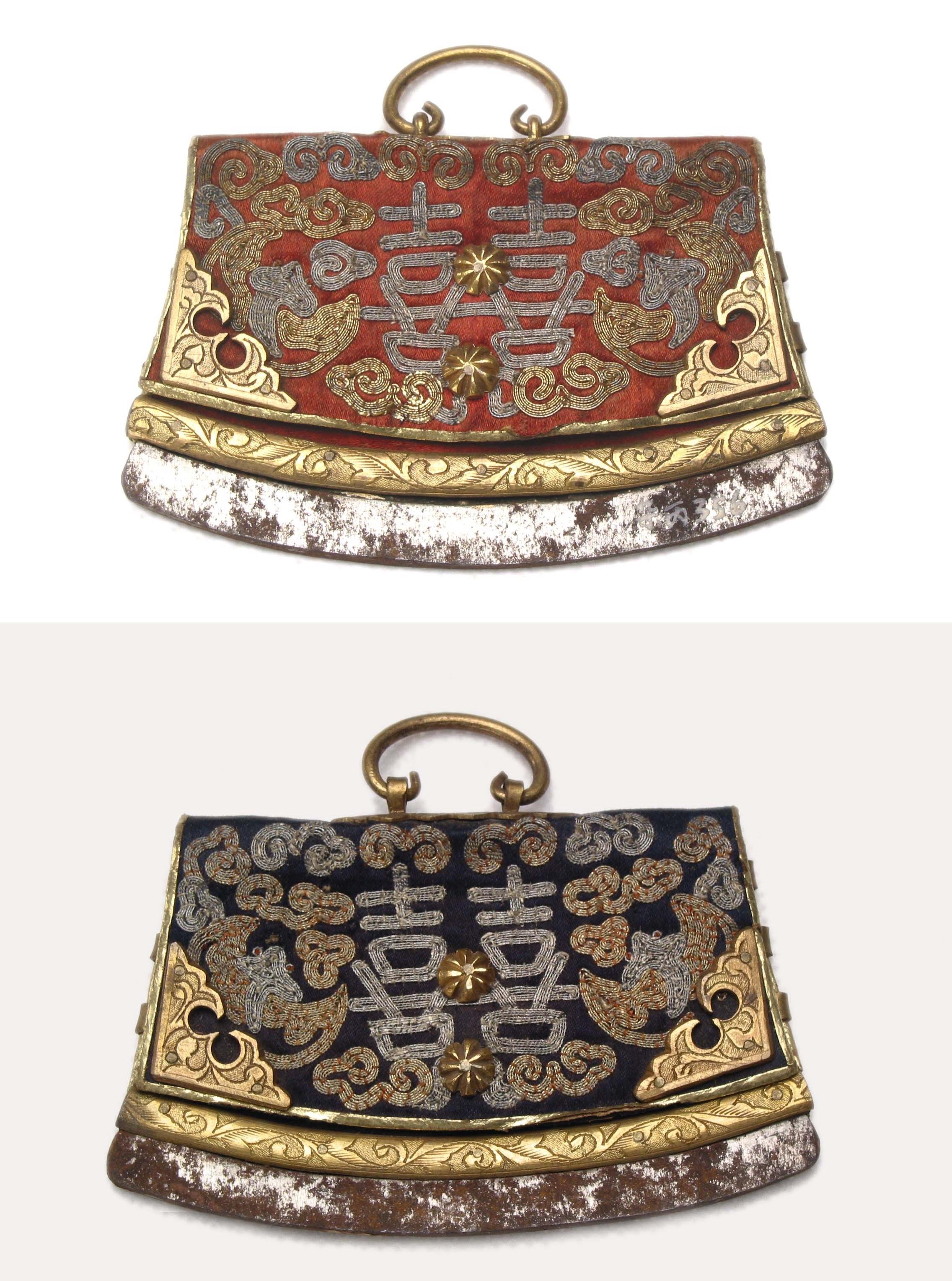 △ 清缎地平金银双喜字火镰(一对),应用于婚庆之时。沈阳故宫博物院藏。