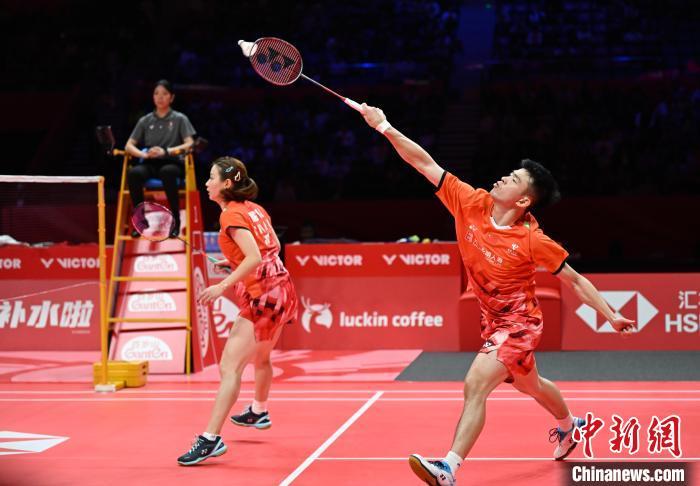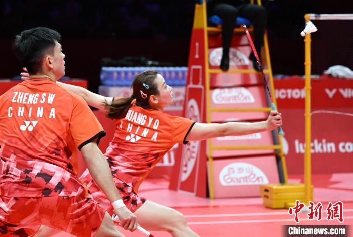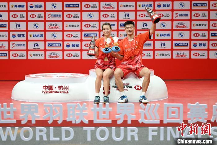 12月15日,2024世界羽联世界巡回赛总决赛在浙江杭州举行,中国组合郑思维(右)/黄雅琼(左)在混双决赛中2比1战胜马来西亚组合陈堂杰/杜颐沩,夺得本项目冠军,“雅思组合”在国际赛场的比赛圆满谢幕。中新社记者 王刚 摄
