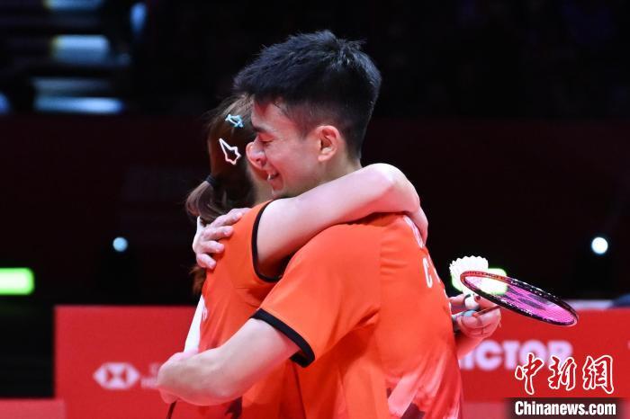 12月15日,2024世界羽联世界巡回赛总决赛在浙江杭州举行,中国组合郑思维(右)/黄雅琼(左)在混双决赛中2比1战胜马来西亚组合陈堂杰/杜颐沩,夺得本项目冠军,“雅思组合”在国际赛场的比赛圆满谢幕。图为郑思维和黄雅琼夺冠后在赛场拥抱。中新社记者 王刚 摄