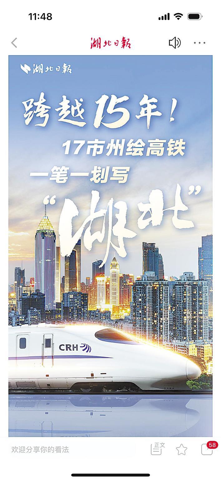 从2009年武广高铁开通运营,到2024年荆荆高铁开通运营,正好是15年。我们决定,围绕“15年”和“湖北”这两个关键词谋划选题。