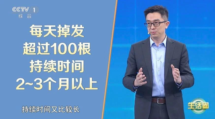 每天脱落的头发数量超过了100根,持续时间在2~3个月以上,可能存在病理性脱发,需及时就医,对症治疗。