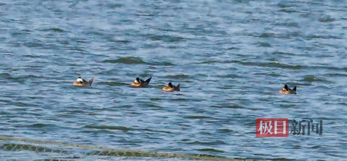 今日,武汉市观鸟协会发布了这一喜讯:14日,在长江新区草湖发现4只白头硬尾鸭。