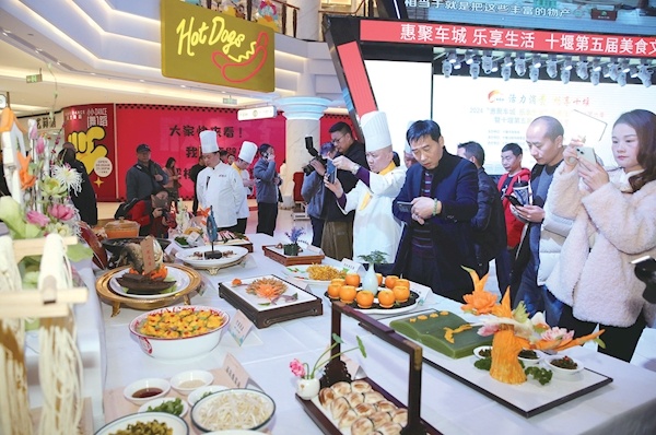 昨日下午,2024“惠聚车城乐享生活”消费促进活动第六季暨十堰第五届美食文化年度大会在环球港举行。在为期近一个月的时间里,通过丰富多彩的美食展示、文化交流与消费促进举措,为市民及游客打造集美食体验、购物消费、文化娱乐为一体的盛大活动。据统计,本届美食节活动参与商家近300家,累计发放企业消费券28.2万张,总价值超2000万元,拉动消费近亿元。图/记者 吕世银 通讯员 刘宏杰