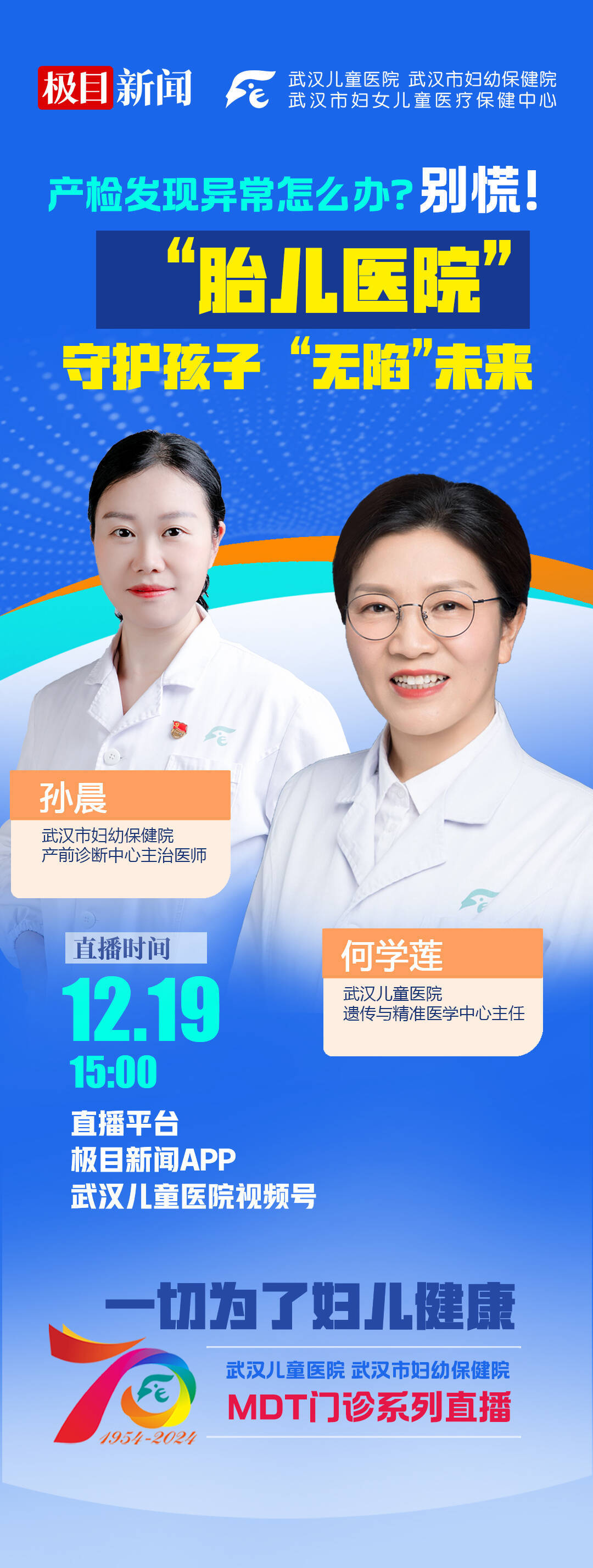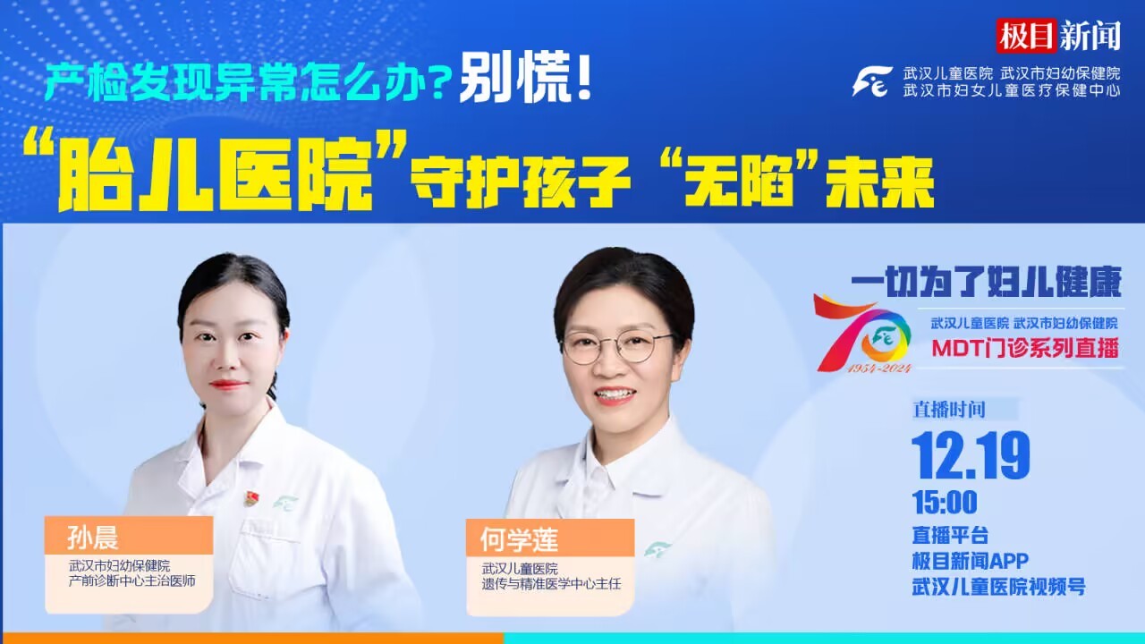 12月19日15时,武汉儿童医院/武汉市妇幼保健院、极目新闻联手打造的重磅系列直播第二场——《产检发现异常怎么办?别慌!“胎儿医院”守护孩子“无陷”未来》将开启。