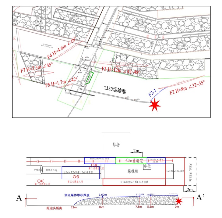 调查报告显示,镇雄县平顶山煤业有限责任公司成立于2005年,属民营企业。事故地点位于1153运输巷掘进工作面迎头,该工作面采用综掘工艺。事故发生时,煤矿沿煤层顶板掘进至距巷道开口位置485m,事故发生前,煤矿准备在该地点调整方位。