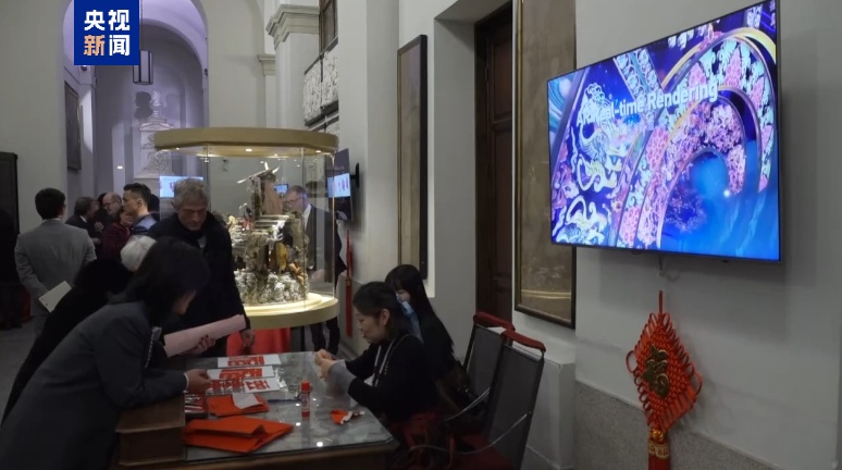 在活动现场,茶艺、书法、剪纸等传统项目吸引众多来宾,沉浸式体验中国文化。当天的活动上还播放了总台春晚全球推介片,带来浓浓的喜庆气氛。这也是总台春晚全球推介片在意大利的首次落地。
