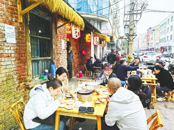 街巷里的监利早酒摊点人气很旺。(湖北日报全媒记者 周立新 摄)