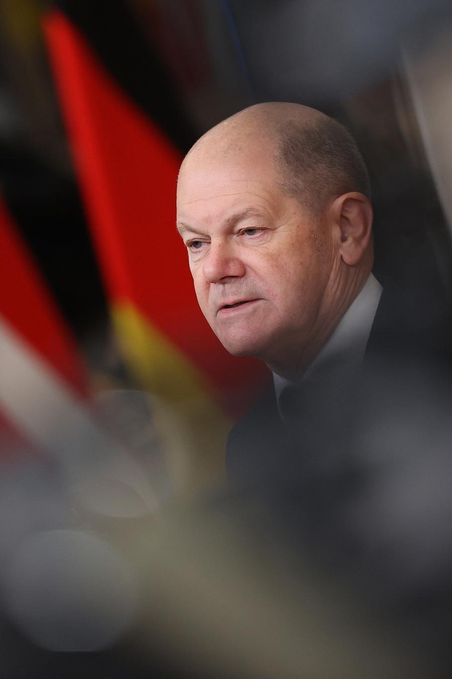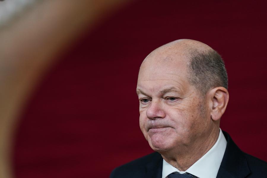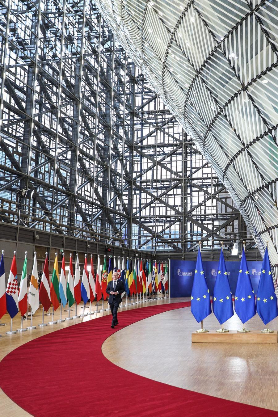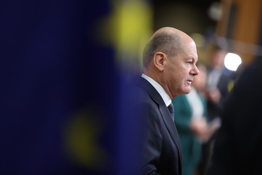 12月19日,在比利时布鲁塞尔,德国总理朔尔茨出席欧盟峰会。新华社记者 彭子洋 摄