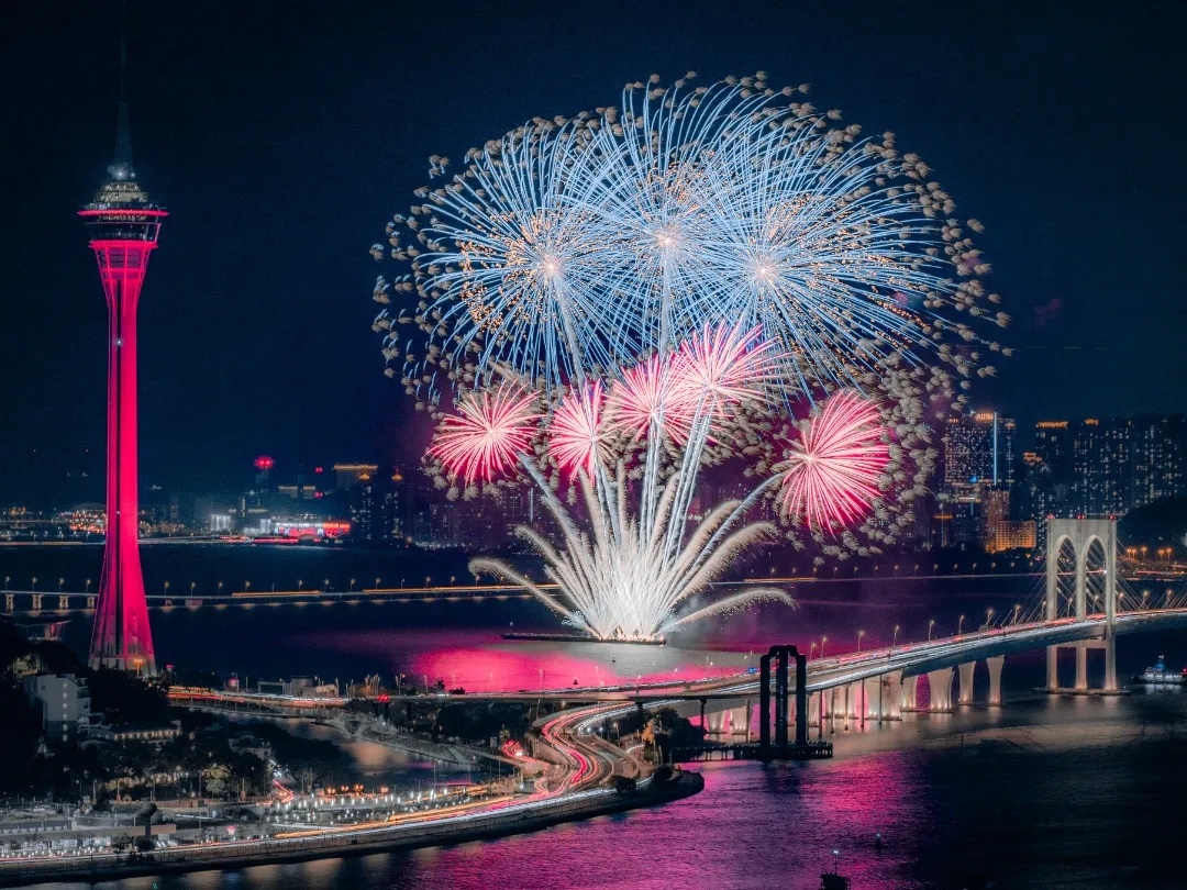许多节庆活动持续数月,如“2024幻彩耀濠江”灯光装置秀,在城市空地摆放了大量光影雕塑、互动装置,活动从12月持续至2025年2月。位于龙环葡韵的“回归的旋律”庆回归主题花展,开放时间也从12月持续至2025年1月5日。令大家最为期待的“庆祝澳门特别行政区成立25周年烟花表演”,则在12月25日晚,于澳门旅游塔对出海面上演。