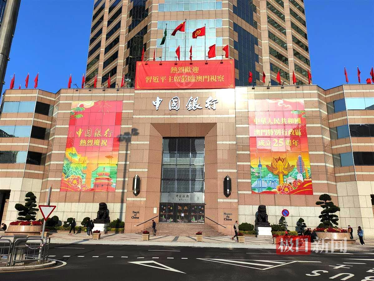 中国银行(澳门)大楼外悬挂的巨幅庆祝海报
