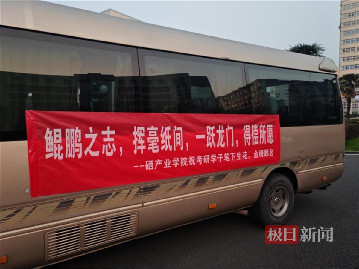清晨6时,该校生命科学与技术学院专属送考车辆已整齐地等候在校外公寓门口,辅导员和学生党员志愿者们以饱满的热情投入到送考服务中,“研”阵以待。这也是学院提供送考服务的第6个年头。志愿者们手举的“一战成硕”“逢考必过”立牌,以及车身上“攀蟾步月青云志 夺锦名列壮志心”“以梦为马破千险 凭志作舟越万难”的标语向莘莘学子传递信心和力量。