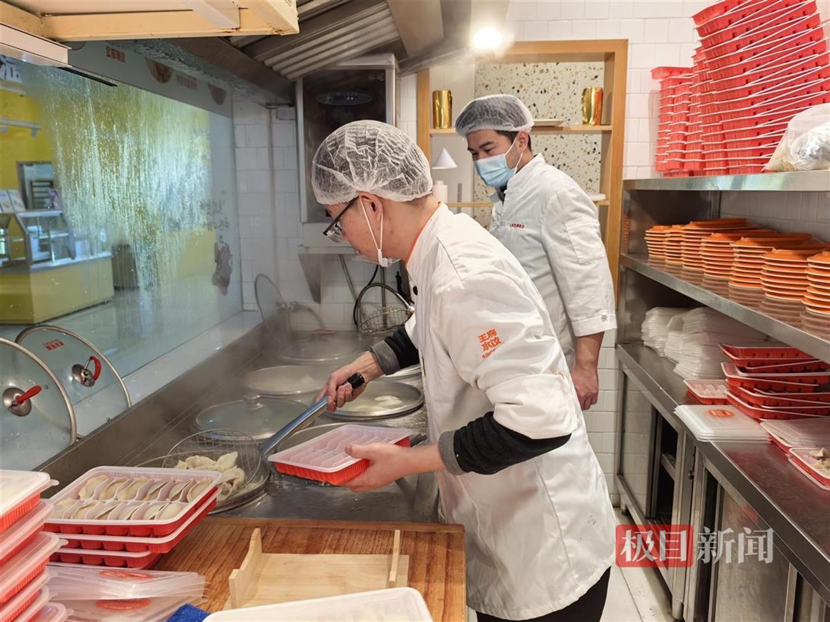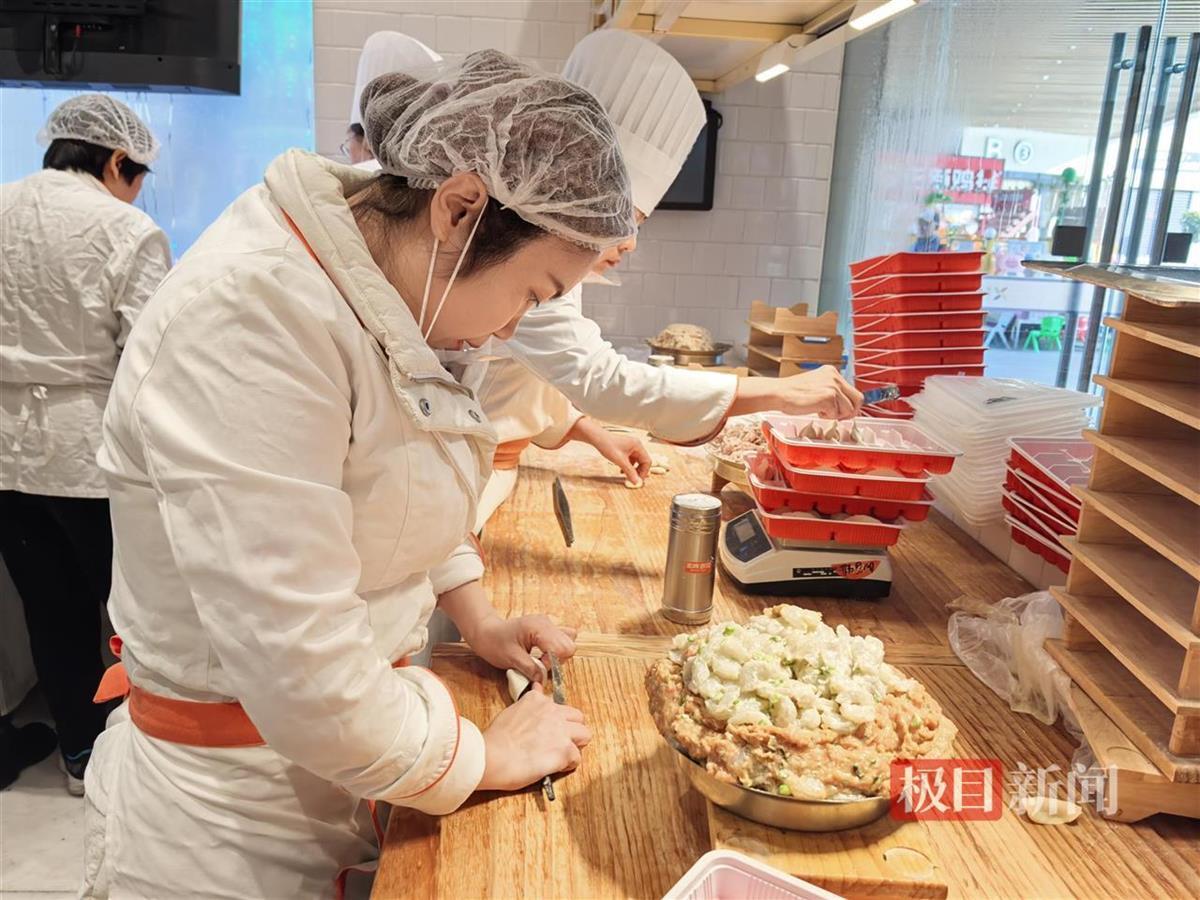 12月21日,极目新闻记者在武汉多家饺子馆看到,商家加大了原材料备货,餐厅工作人员都忙着赶制各种口味的现包饺子,以应对冬至当天的销售高峰。商超内的速冻饺子也颇受欢迎,不少消费者都将饺子加入了采买清单。
