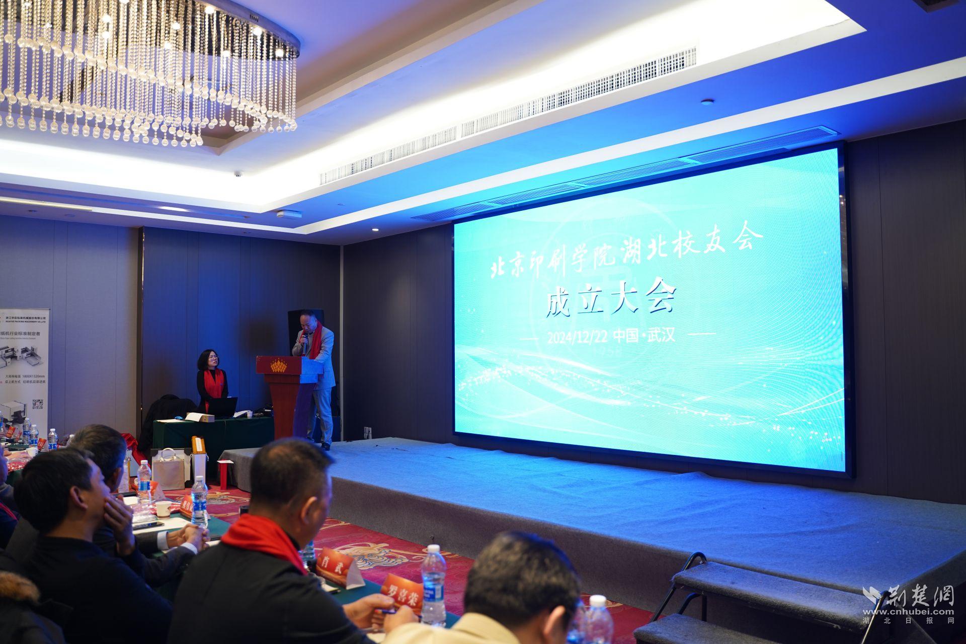 紧接着大会公布了北京印刷学院湖北校友会组织架构团队名单,北京印刷学院湖北校友会首任会长李田向大会发言。他说:“校友会的建立宗旨有三,一来连接校友情谊,共谋发展;二来,宣传校企共建优秀成果,吸引更多的优秀人才加入行列;三来,积极参与社会服务,为社会发展贡献智慧和力量。”对于接下来的工作,他表示,“在未来的日子里,北京印刷学院湖北校友会将以更加饱满的热情和更加扎实的工作,努力践行校友会的宗旨。通过定期组织各种活动,如校友聚会、学术交流、企业参观等,增进校友之间的感情和交流;积极参与学校的发展建设,为学校的学科建设、人才培养、科研创新等方面提供支持和帮助;主动承担社会责任,积极参与公益事业,为社会的和谐发展做出贡献”。