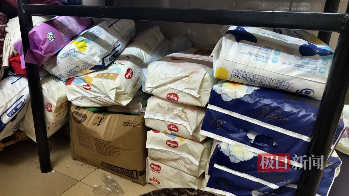 房间内堆放的尿不湿
