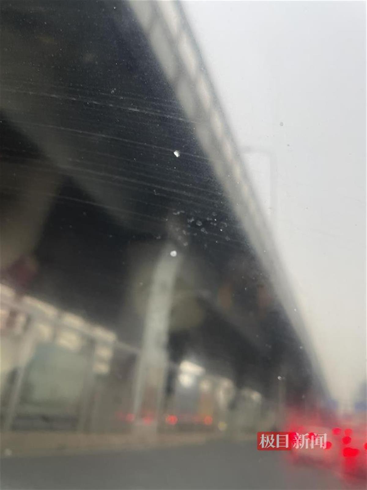 7时许,徐先生开车开到了二环线马房山,发现车窗上飘的都是雪子,但是手机很难拍到。