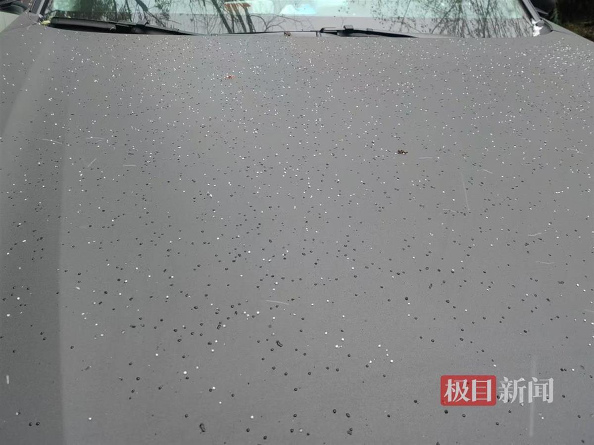 7时55分,在洪山区杨园南路曲水兰亭路边,电动车黑色座椅上蹦跶着白色小米粒,引起了市民胡先生的注意:“看到落下的雪子越来越多,越来越密……”