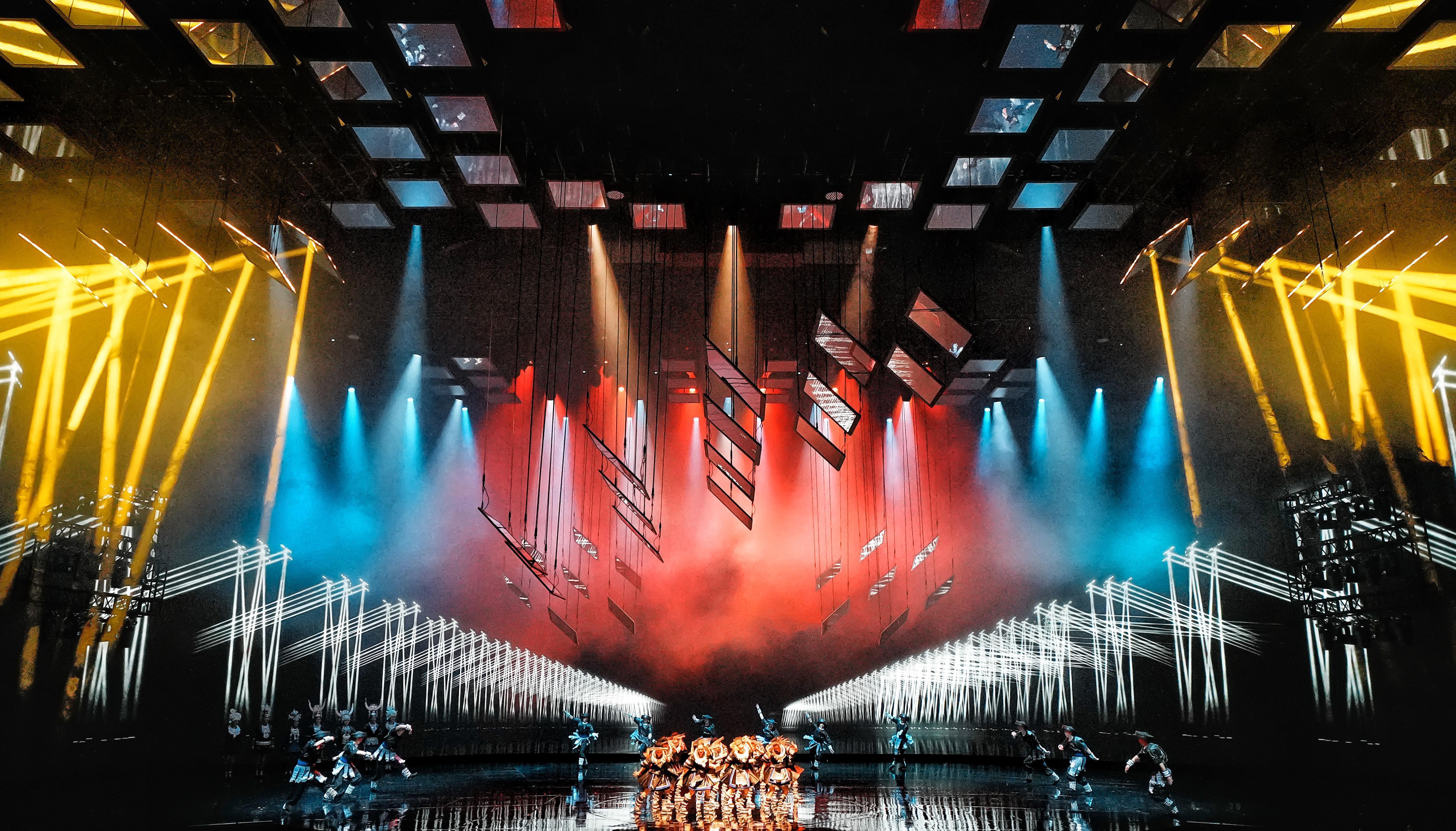 《苗歌·空灵》中,108块动力镜面与72个激光灯组成的灯光系统,会根据现场环境实时调整,与来自大山的天籁之声、传承千年的古老苗歌相互配合,感染力十足。