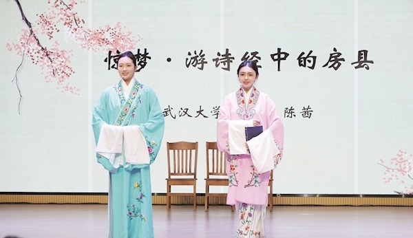 “我有嘉宾,鼓瑟吹笙”,开幕式在热烈的氛围中拉开帷幕。房县人民政府副县长邹莉发表了热情洋溢的致辞;特邀嘉宾华中科技大学哲学院党委书记杨海斌围绕“诗经文化与当代青年”进行了精彩的主题演讲,生动展示了诗经文化的独特魅力;来自武汉大学、华中科技大学的留学生们带来的《非洲手鼓舞蹈》表演将现场氛围拉到最高点,展现世界多元文化的交流与融合;随后进行了中国首部电子版诗经图书《每日诗经》与首部以诗经文化为主题的文旅爱情短剧《醉是人间一回眸》的发布会。