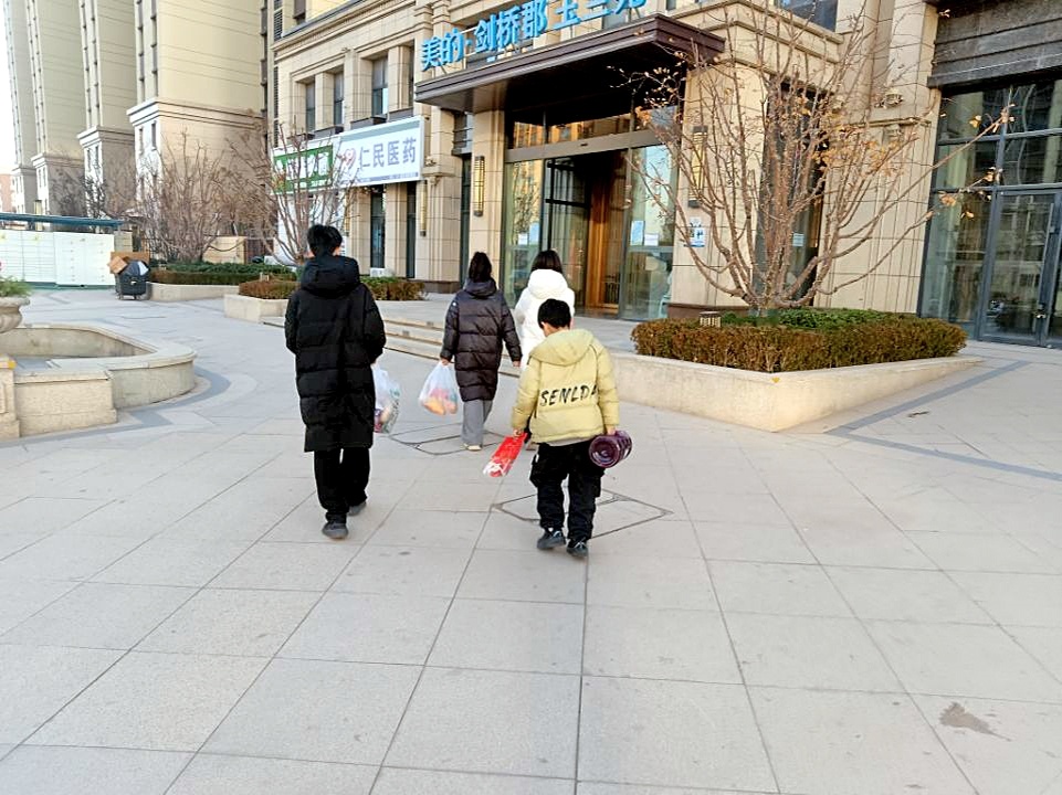 河北邯郸,杨妞花和三个孩子逛超市回来 摄影:楚天都市报极目新闻记者肖名远