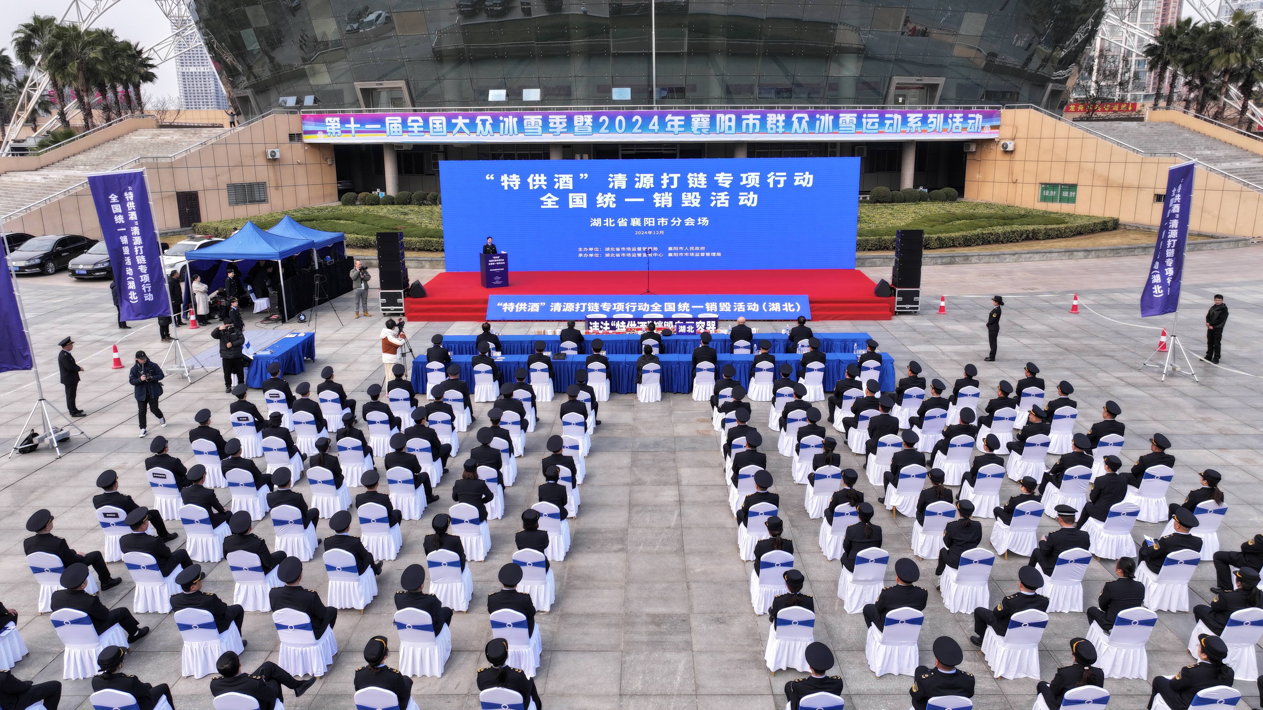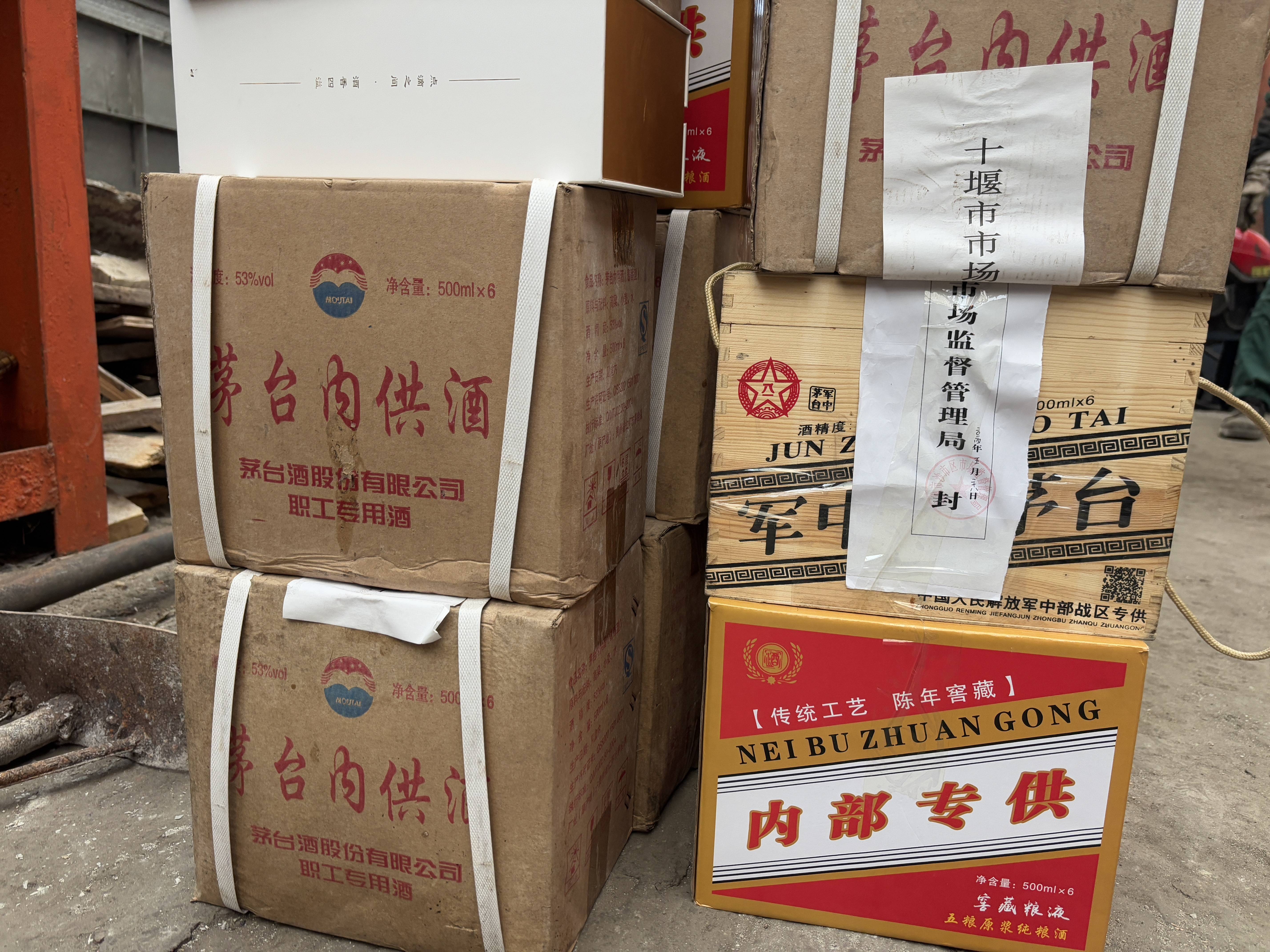 在位于襄阳市的“特供酒”清源打链专项行动全国统一销毁活动湖北省分会场,被查获的“特供酒”并排摆放在空地上,上面写着“军中茅台酒”“五粮液内部专供酒”等特供字样。工作人员将一箱箱“特供酒”扔进温度高达1100多摄氏度的焚烧炉内。不到20分钟,首批300多公斤“特供酒”销毁完毕。