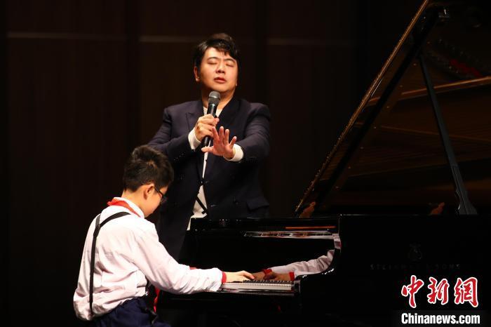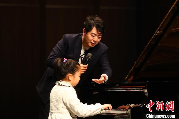 12月24日下午,江西南昌,钢琴家郎朗在音乐分享会现场与琴童互动,分享自己的音乐旅程。中新社记者 刘占昆 摄