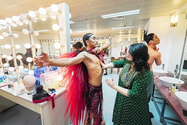 服装师对演出服装进行微调