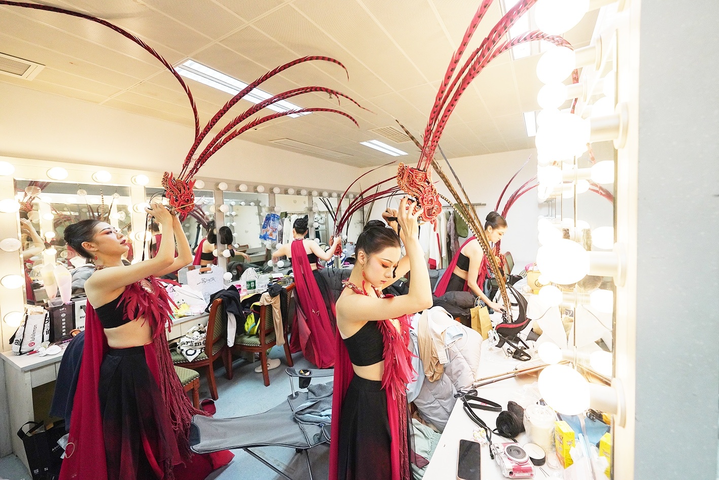 演出前,演员们早早就来到化妆间准备