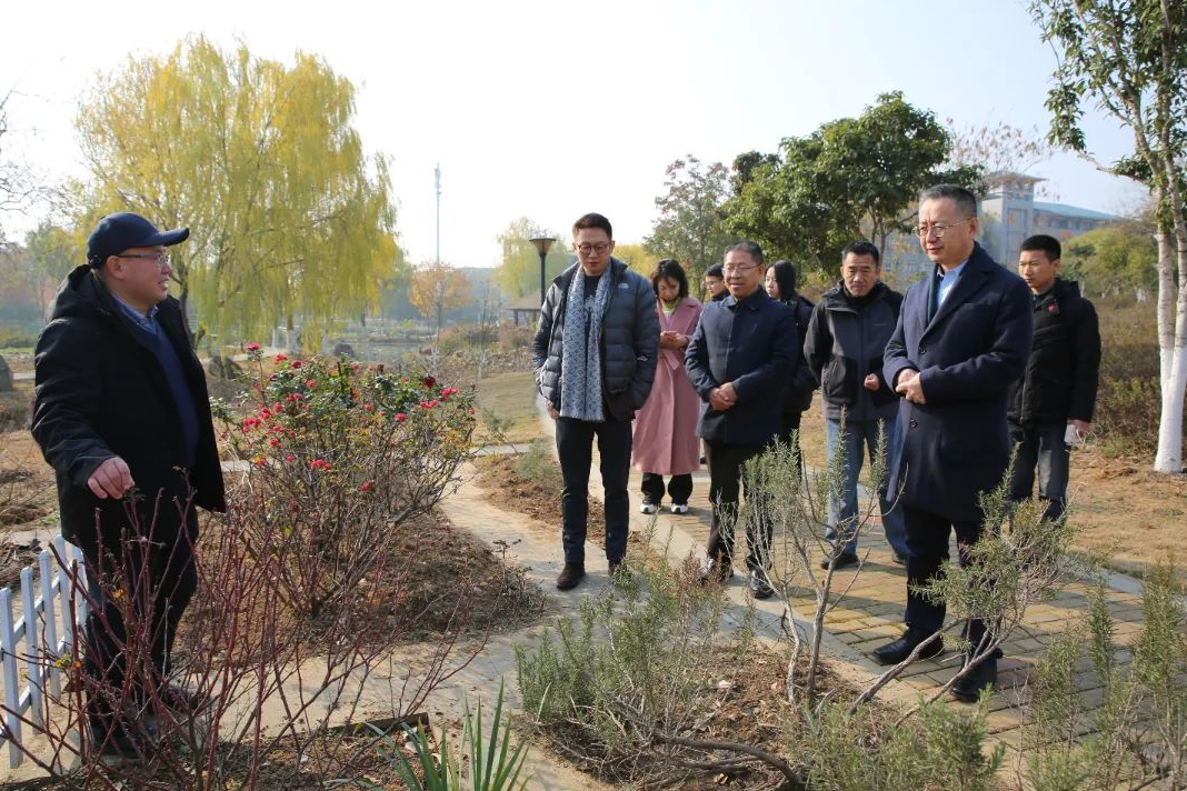 中央广播电视总台华语环球节目中心党委专职副书记杨奉涛一行参观学校药用植物园