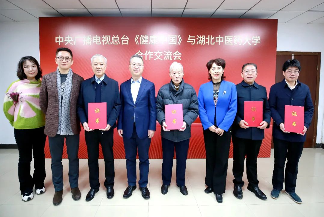12月24日,中央广播电视总台《健康中国》栏目与湖北中医药大学合作交流会举行,湖北中医药大学成为中央广播电视总台《健康中国》栏目合作机构。中央广播电视总台华语环球节目中心党委专职副书记杨奉涛,《健康中国》栏目制片人白桦、副制片人张坤,湖北总站记者冯成,湖北省委宣传部文明培育处处长、一级调研员万春梅,湖北中医药大学校长陈刚,国医大师梅国强教授,湖北中医大师、湖北省中医师协会会长周安方教授,党委常委曹继刚,相关职能部门及各学院负责人参加会议。会议由曹继刚主持。