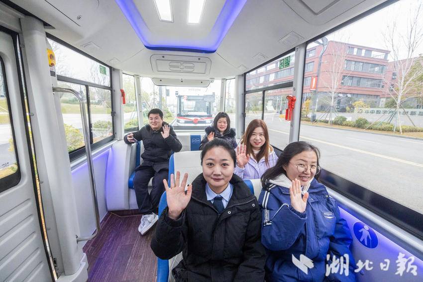 首批乘客体验自动驾驶公交。