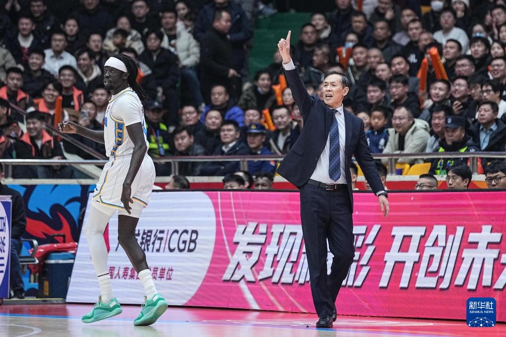 12月25日,北京北汽队主教练许利民(右)在场边指挥。