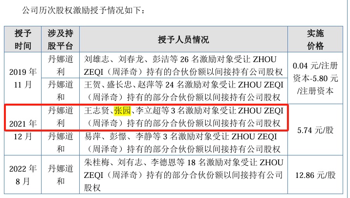 招股书还披露,丹娜道利是丹娜生物的员工持股平台。2021年12月,王志贤、张园、李立超等3名激励对象受让ZHOU ZEQI (周泽奇)持有的部分合伙份额以间接持有公司股权。但国家企业信用信息公示系统显示,王志贤、张园2019年12月13日已经成为丹娜道利合伙人。上述入股日期比招股书披露提前了两年,对此丹娜生物也未做说明。