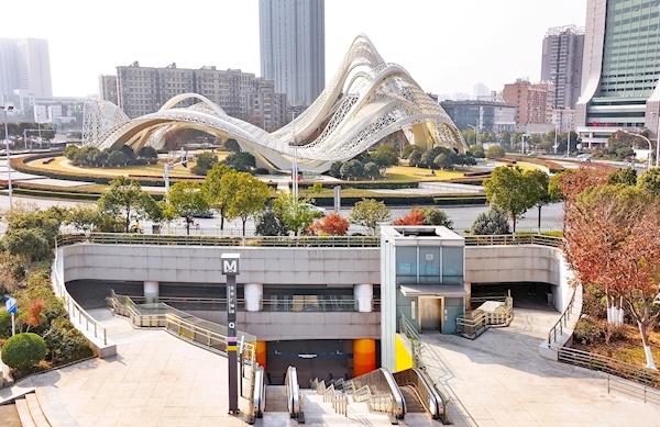 11号线光谷广场站开通运营后,市民乘客可通过路面抵达位于地下一层的G、H、J、Q、R五个出入口进入车站,五个出入口分别对应金(黄色)、木(绿色)、水(蓝色)、火(红色)、土(棕色)等5个区域。每个出入口均设有上下楼的手扶电梯、垂直电梯,乘客进出站非常方便。“乘客除了通过立柱指引标志查看,还可以通过地面颜色和刻度,精准确定自己所处的位置。”11号线光谷广场站值班站长聂珑介绍说。