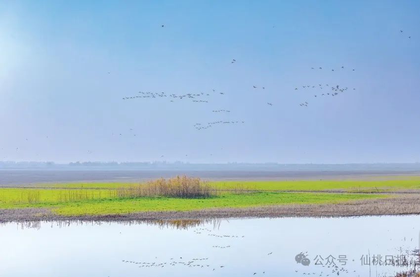 “嘎——”湿地深处,又惊起一群候鸟,在碧空结队盘旋、俯冲掠食,随后四散开来,消失在芦苇荡里。“小天鹅、白头鹞这些‘老朋友’又来了,‘稀客’也不少。等明年开春,它们还会再来……”