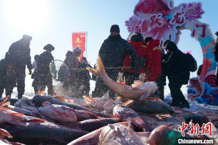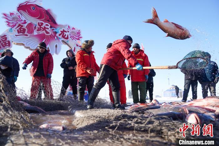 2024黑龙江“冷水鱼·冬捕季”系列活动在大庆市杜尔伯特蒙古族自治县连环湖畔启幕。赵宇航 摄