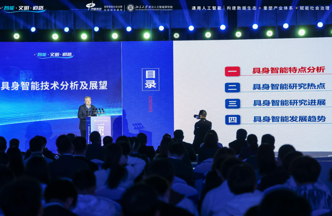 北京大学武汉人工智能研究院举办的第二届智能社会治理论坛上专家介绍具身智能技术。资料图