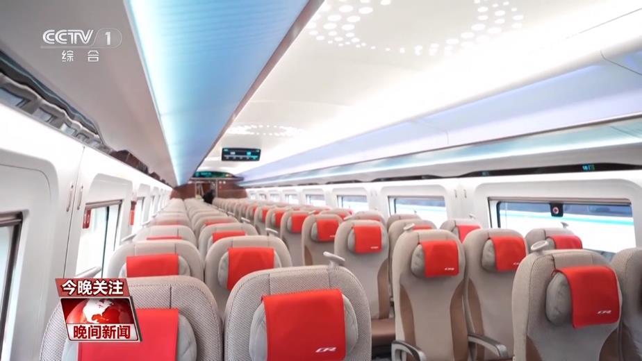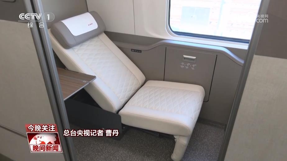总台央视记者 曹丹:那现在我们所在的车厢,就是一等座的车厢,跟现在的复兴号相比,最大的区别在于座椅的全包裹。我们坐下来感受一下,首先坐上去的感觉,头部、颈部还有背部都是有支撑的,调节座椅也会有一些区别,除了后背的靠背会倒下去以外,人的整个身体是会往前走,乘坐起来的感受会更加的舒适。