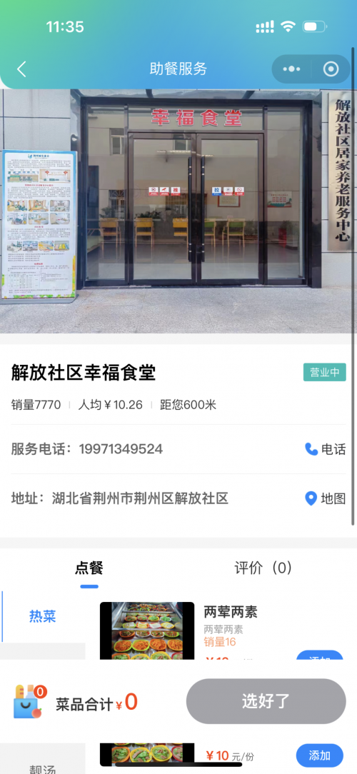 解放社区的熊爷爷由于与老伴儿分隔两地,长期独自生活。他是社区幸福食堂的忠实拥趸,毕竟独自买菜做饭太过繁琐。幸福食堂推出了线上点单业务,爷爷对此赞不绝口。他说在微信小程序“湖北养老”下单,就能享受送餐上门服务,价格实惠,菜品荤素搭配均衡,实在是省心省力。