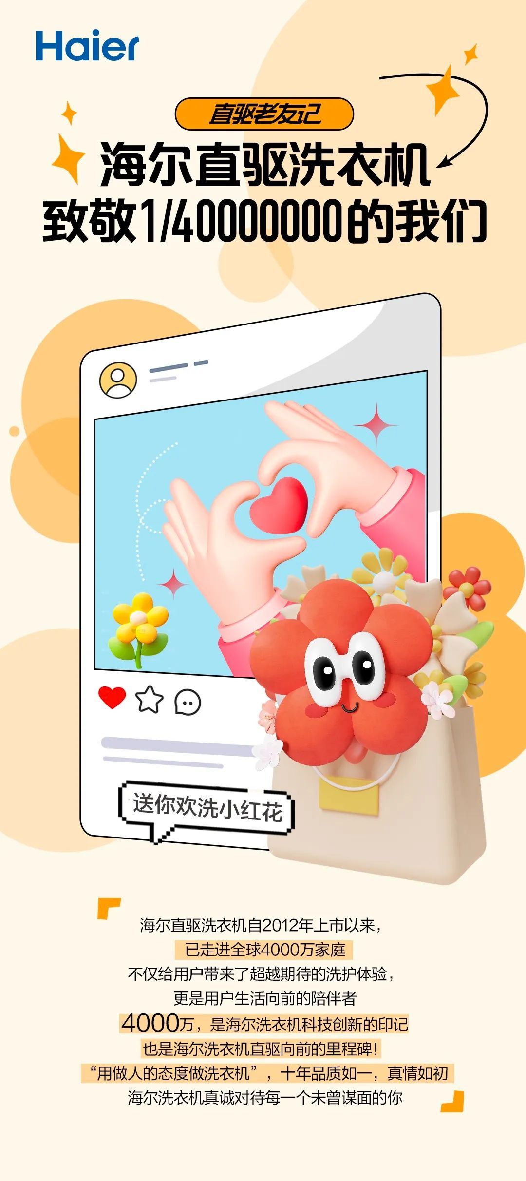 在你投身热爱,享受过程中的快乐和成就感时,海尔直驱洗衣机陪伴左右,为你解决日常家务的后顾之忧。海尔直驱动力,品质十年如一,自2012年上市已走进全球4000万家庭,给用户带来了超越期待的洗护体验。