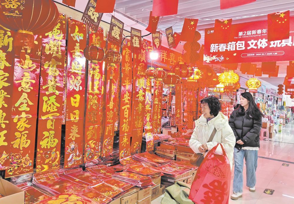 12月30日,市民在襄阳国际商贸城选购新年饰品。2025年将至,各地布置一新,在红红火火中迎接新年的到来。