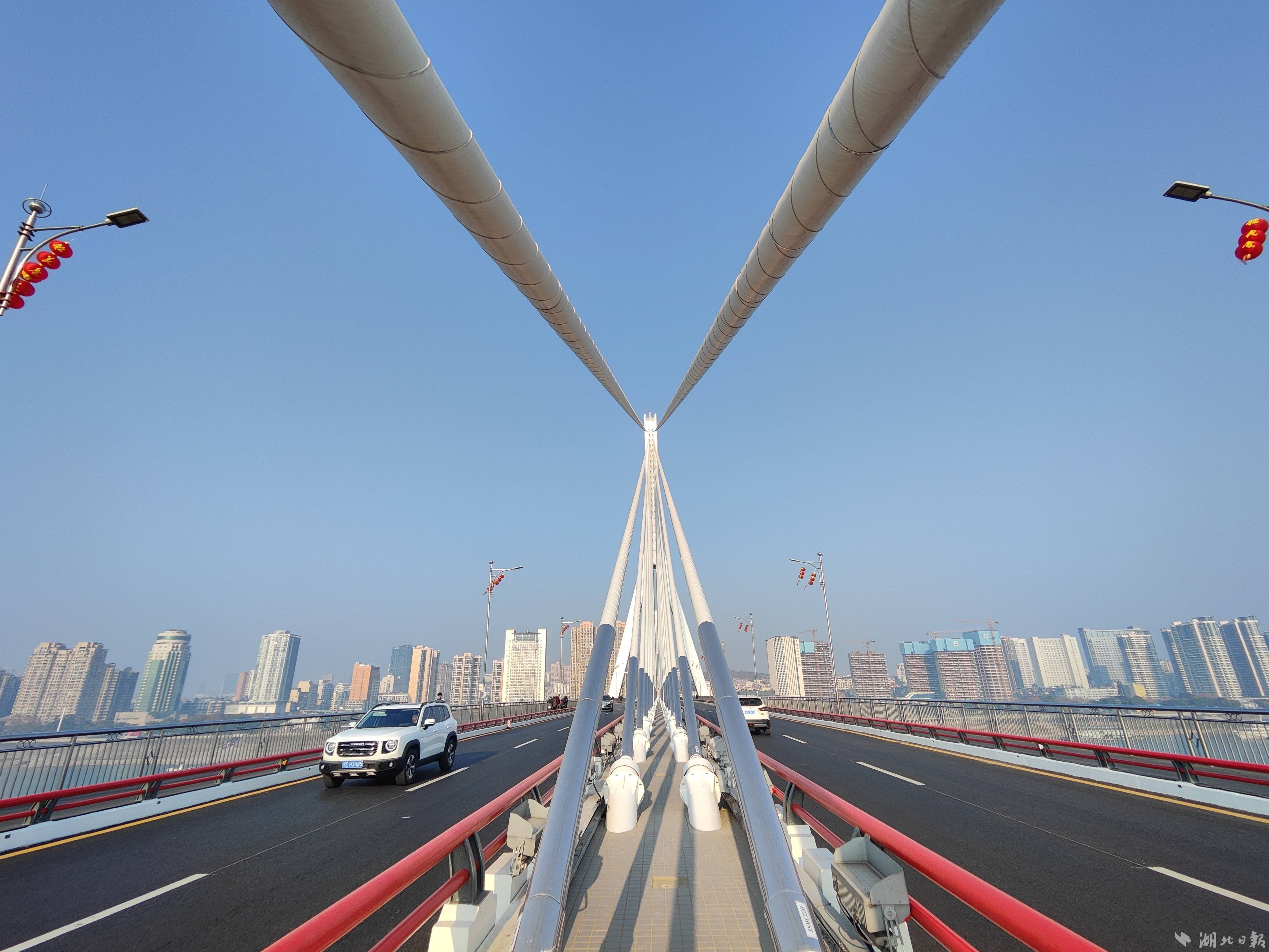 夷陵长江大桥是宜昌市主城区第一座跨江通道,连接南岸点军区与北岸伍家岗区。2001年12月28日建成通车,至今已运营23年。桥梁主桥长936米,为中央索面预应力混凝土箱梁三塔斜拉桥。