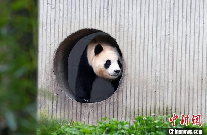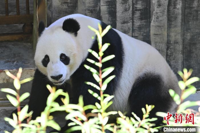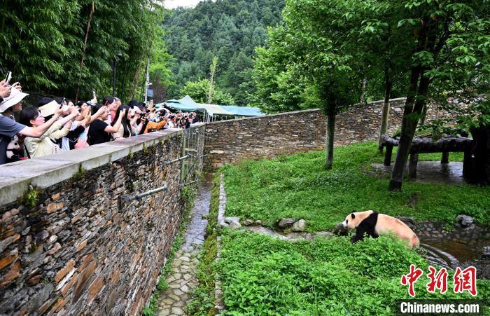 大熊猫作为“球宠”,是备受世界人民喜爱的珍稀濒危野生动物,也是传递中国人民友谊的友好使者。20世纪90年代以来,中国先后与20个国家的26个机构开展了大熊猫国际保护合作研究,对国外公众进一步了解中国大熊猫等野生动植物保护成效、生态文明建设成就及增进中外民间友好发挥了重要作用。到期到龄的旅外大熊猫陆续返回中国后,多数生活在中国大熊猫保护研究中心等机构。每只“海归”大熊猫都会有一份根据其性格特点制定的管理方案,在饲养员的精心照顾下,它们回家后过上了更美好的生活。图为6月12日,中国大熊猫保护研究中心卧龙神树坪基地,大熊猫“福宝”走出圈舍与公众见面。大熊猫“福宝”,雌性,2020年7月20日出生于韩国爱宝乐园。中新社记者 安源 摄